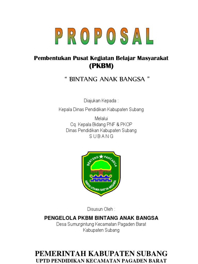 Contoh Proposal Pendirian Pkbm from imgv2-1-f.scribdassets.com Proposal yang kami susun ini diharapkan dapat dijadikan bahan pertimbangan demi terwujudnya pusat kegiatan belajar di daerah kami , dengan harapan ke depan pkbm ini dapat dikembangkan sesuai harapan semua pihak, yaitu sebagai tempat pembelajaran yang diarahkan pada pembemberdayaan potensi masyarakat. Untuk mendirikan pkbm minimal ada dewan pembina 3 orang, direktur atau pimpinan pkbm 1 orang. Hasil identifikasi yang di dapatkan salah satunya, belum tersedianya lembaga pendidikan nonformal, sehingga ke tiga mahasiswi pls tersebut berinisiatif mendirikan sebuah pusat kegiatan belajar masyarakat. Contoh proposal pendirian pkbm proposal penyelenggaraan pusat kegiatan belajar masyarakat (pkbm). Memiliki luas lahan minimal 100 m2; Melalui pembudayaan baca, masyarakat akan meningkat pengetahuannya, meningkat kesehatannya, meningkat tatanan ekonominya yang mana. Konsultasi ke dinas pendidikan kabupaten/kota melalui penilik dikmas/paud dan pnf 4. Pkbm woi mekuk karok mabot b.